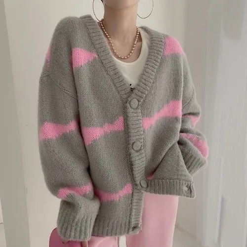 سترة نسائية مخططة برقبة V